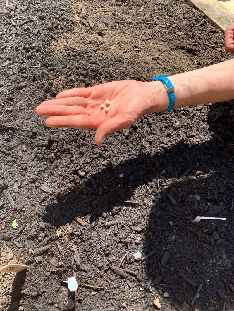 They planted two kinds of peas: Mammoth Melting Sugar Snow Peas and Sugar Snap Peas. They also planted ruby red chard seeds.